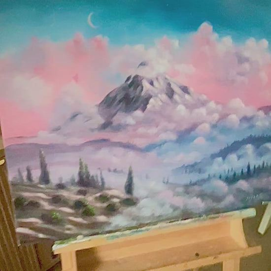 This painting is an original masterpiece that captures the breathtaking beauty of a purple mountain surrounded with cotton candy clouds. The attention to detail is exceptional, with every brushstroke adding depth and dimension to the painting. This stunning work of art is the perfect addition to any home, office or art collection, and is sure to inspire a sense of awe and wonder in all who view it.